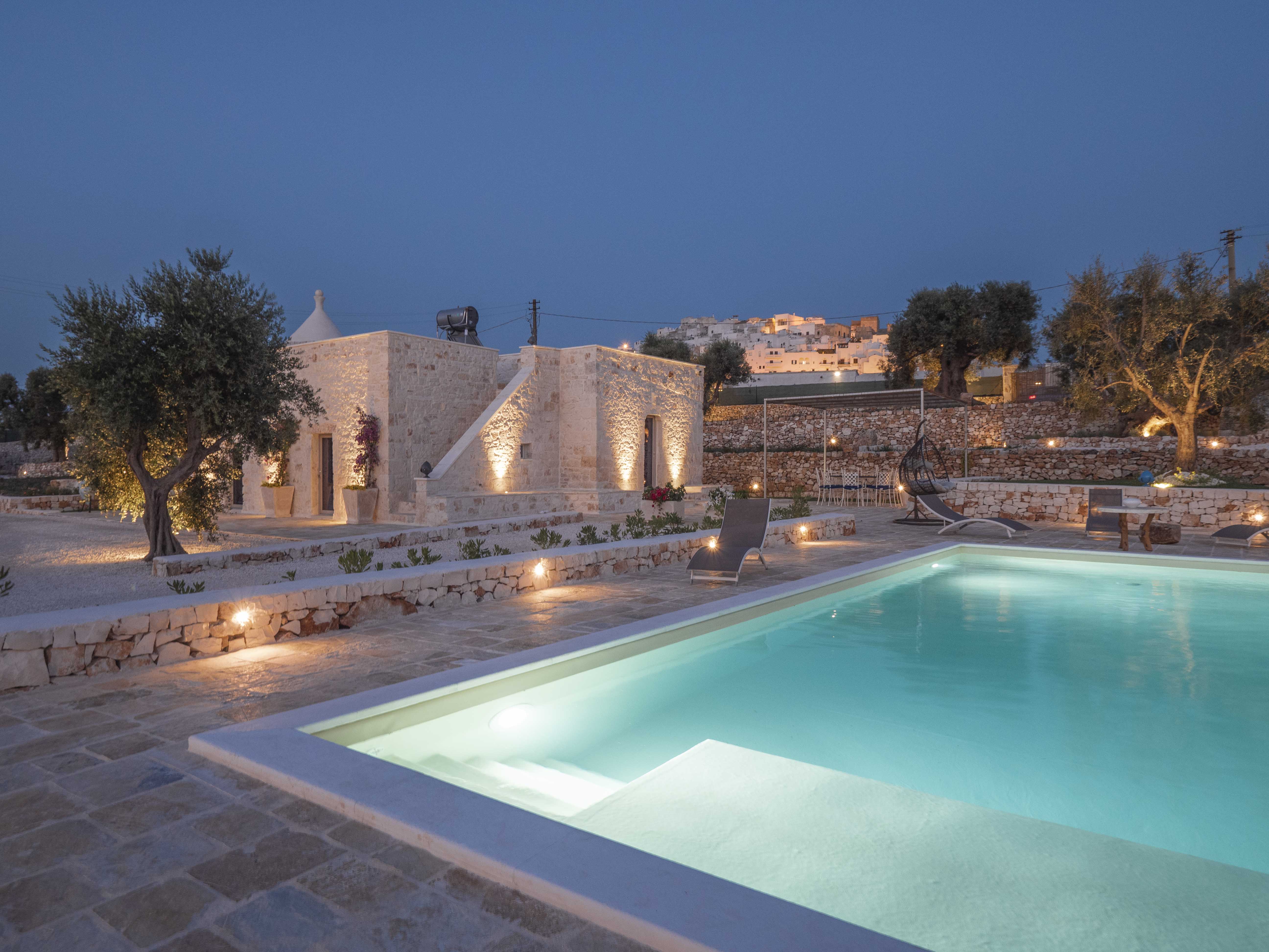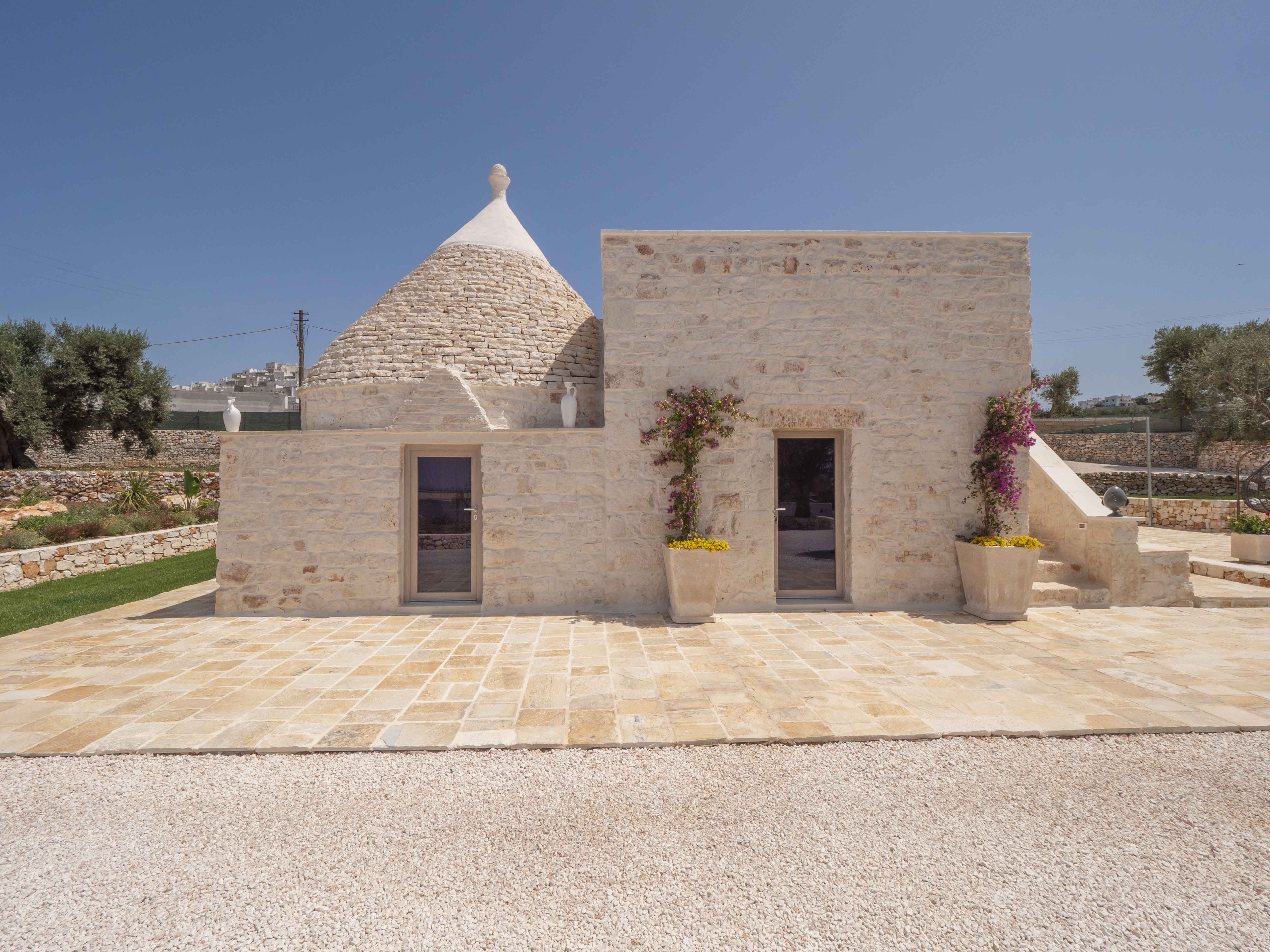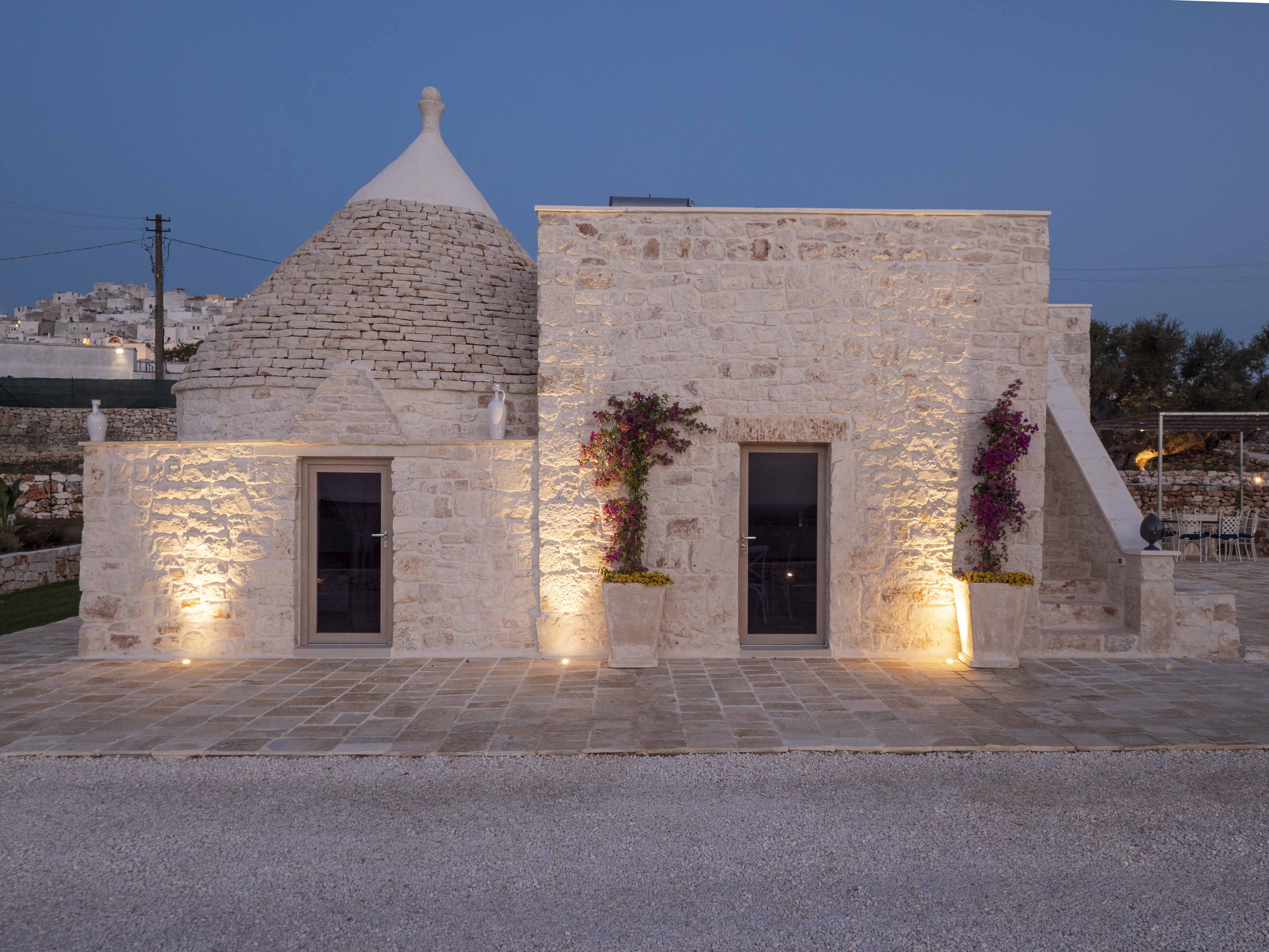Trulli Boario is a 4 bedrooms villa within walking distance of the suspended beauty of Ostuni's historic center. This unique villa combines the authenticity of a sovereign trullo with the elegance of a stone lamia. It offers a rare combination: the intimacy of the countryside and the privileged proximity to the heart of the "White City," with a view that opens up to the sea.