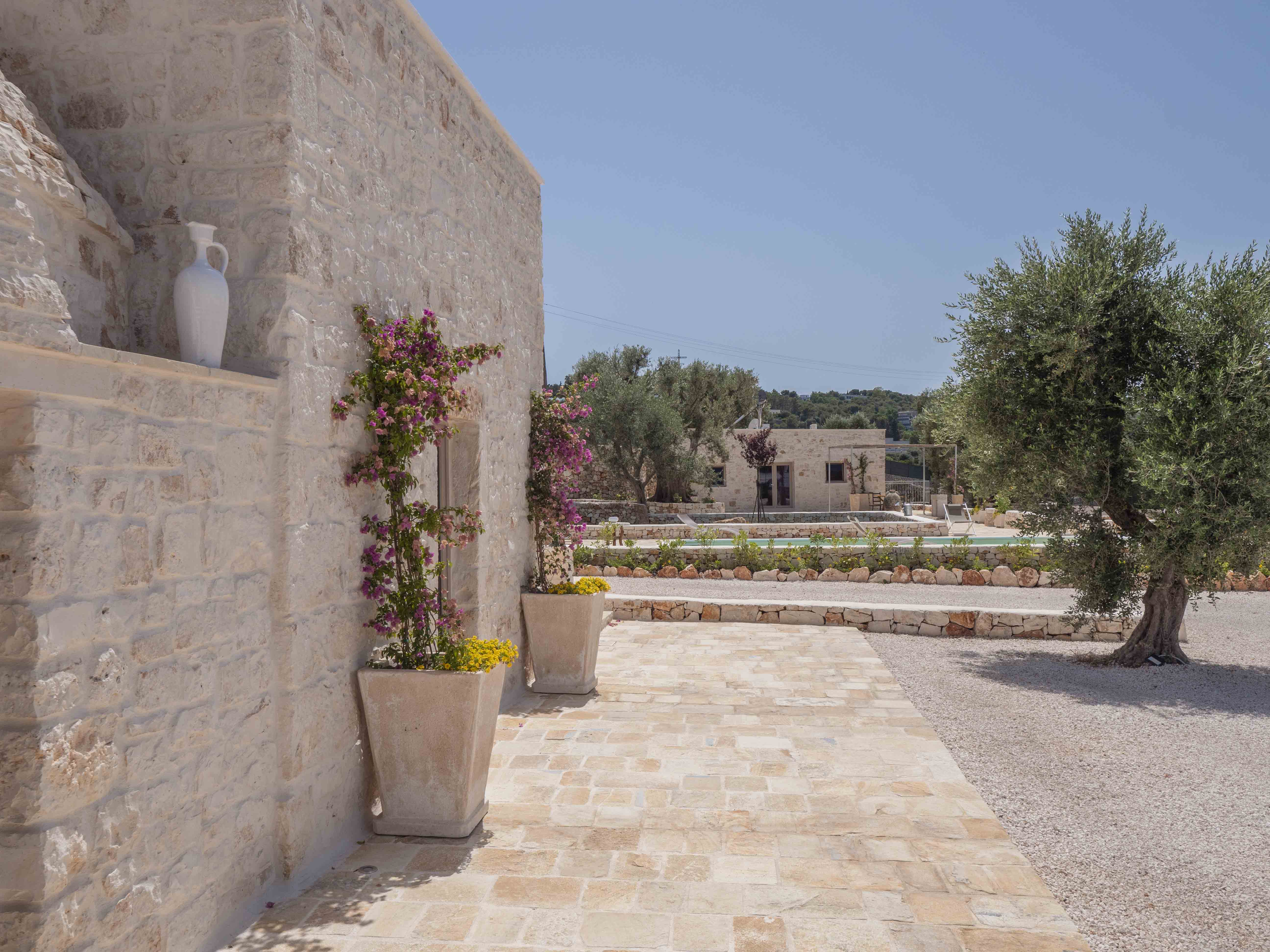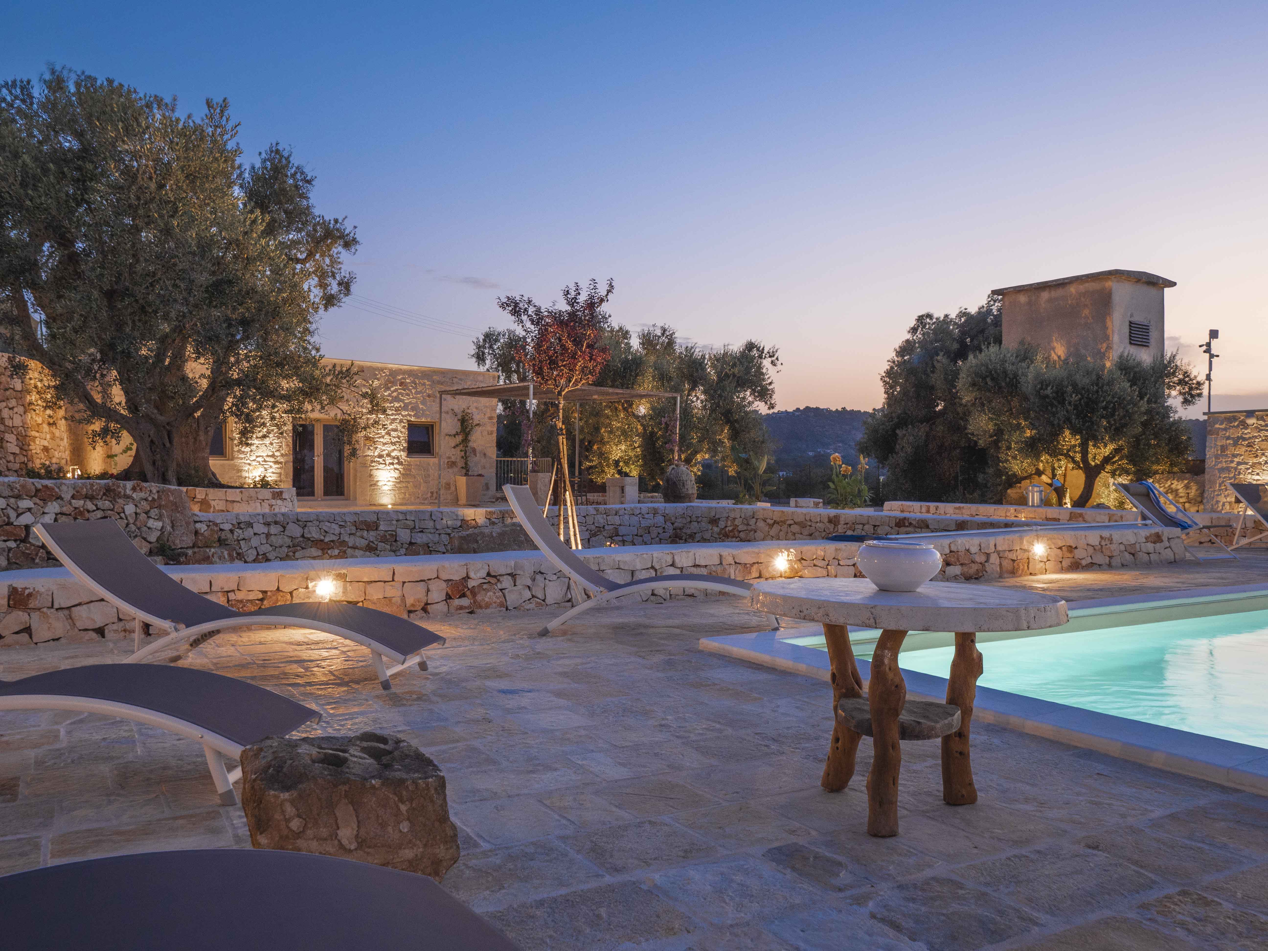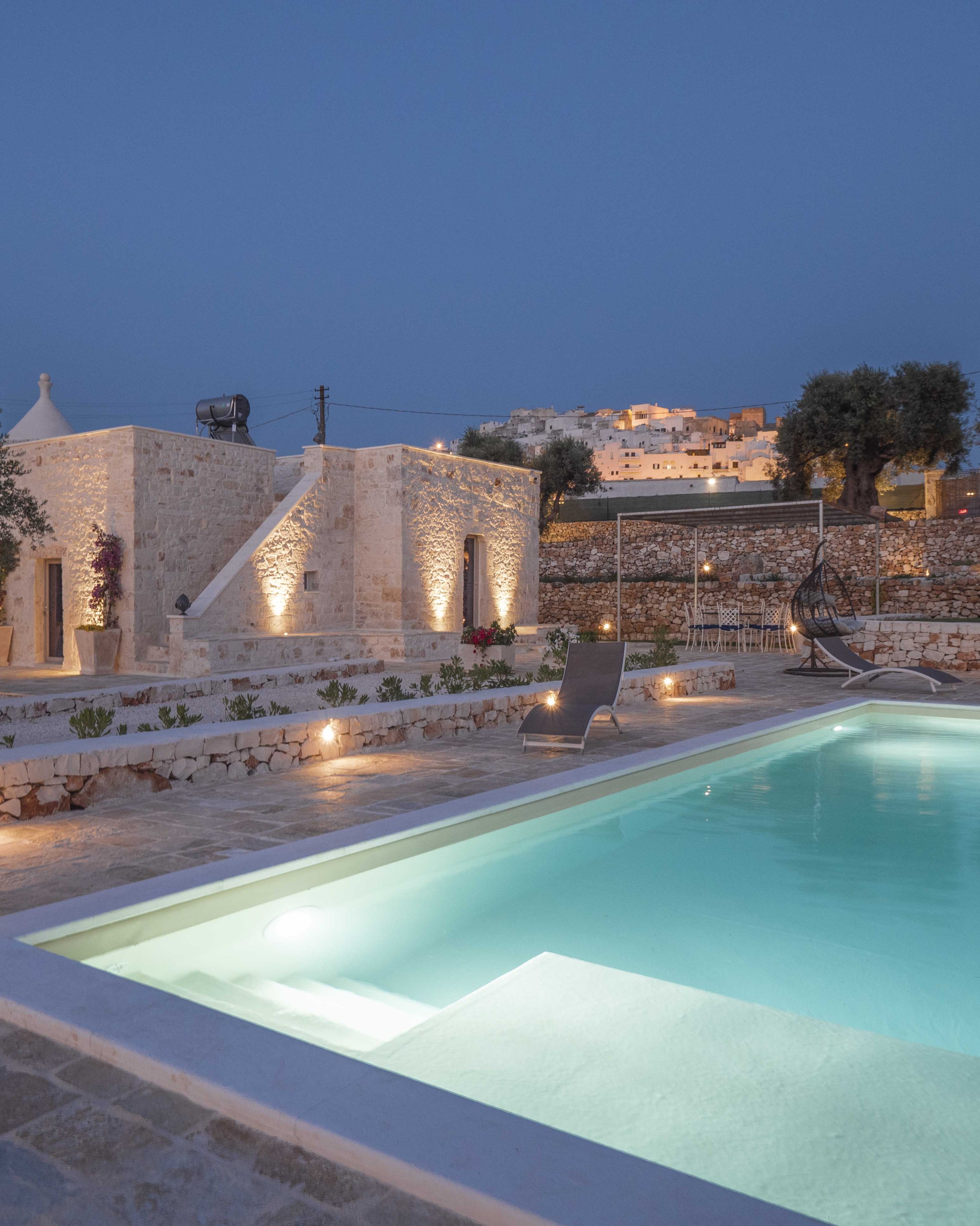 Trulli Boario is a 4 bedrooms villa within walking distance of the suspended beauty of Ostuni's historic center. This unique villa combines the authenticity of a sovereign trullo with the elegance of a stone lamia. It offers a rare combination: the intimacy of the countryside and the privileged proximity to the heart of the "White City," with a view that opens up to the sea.
