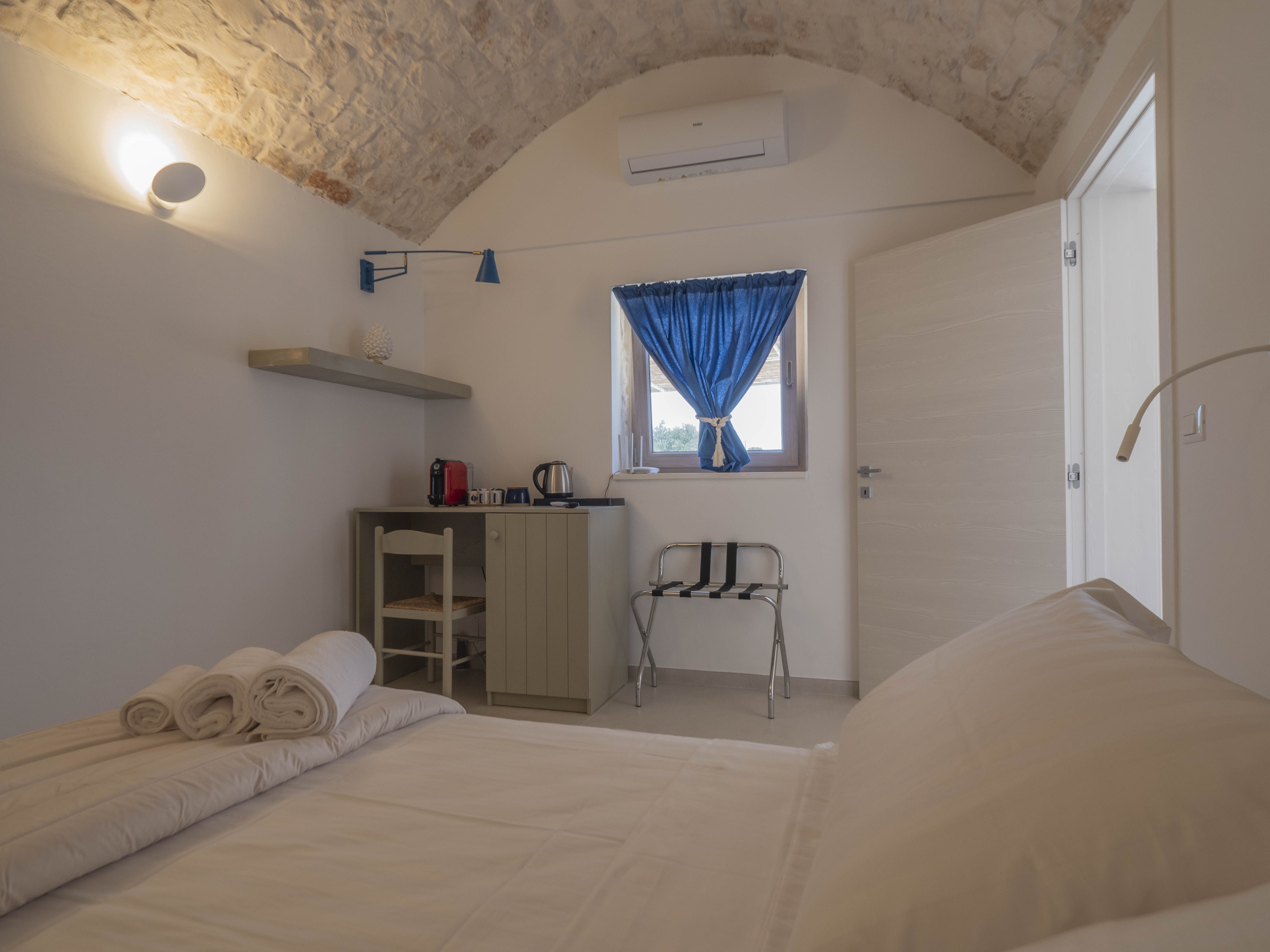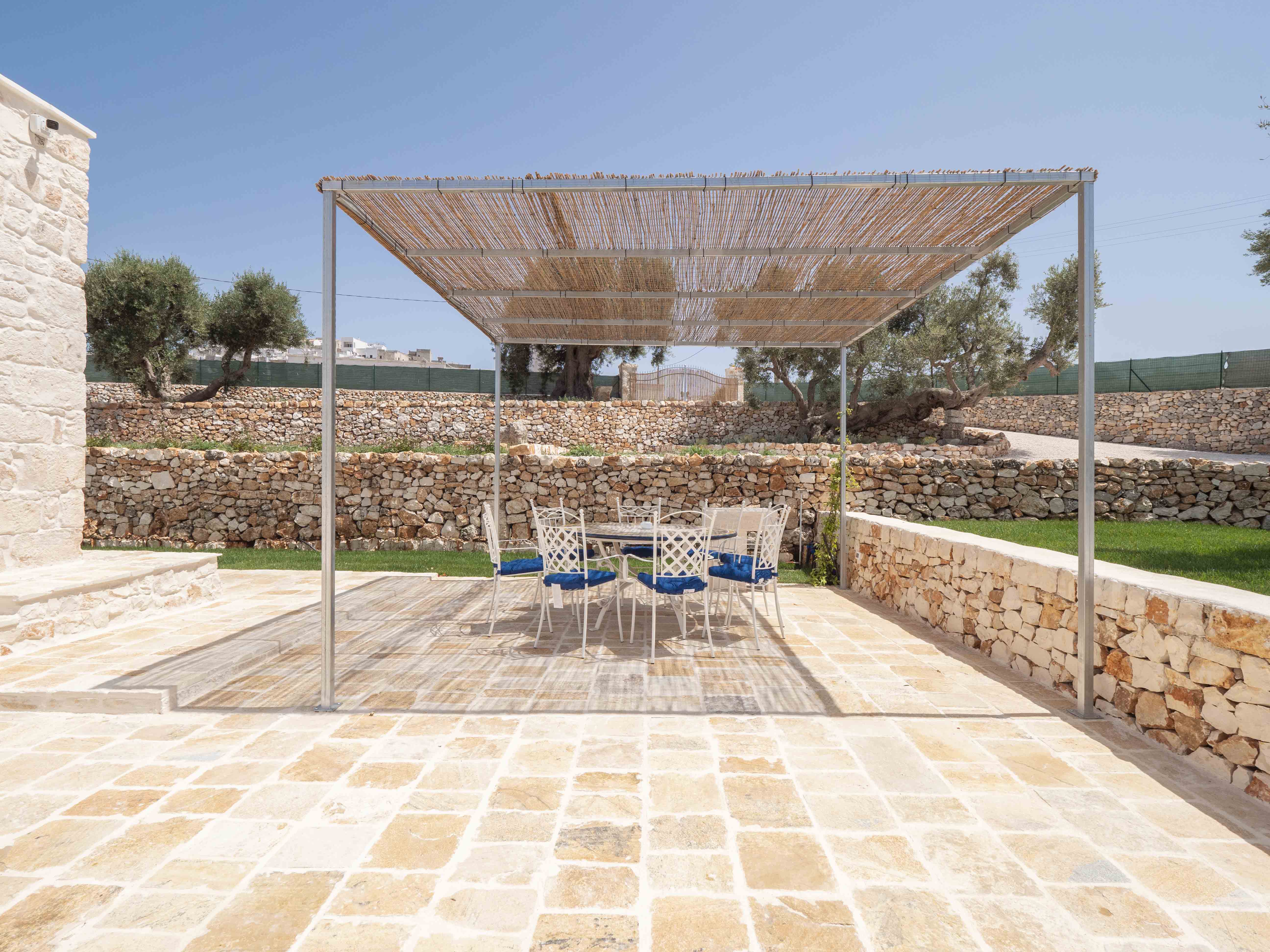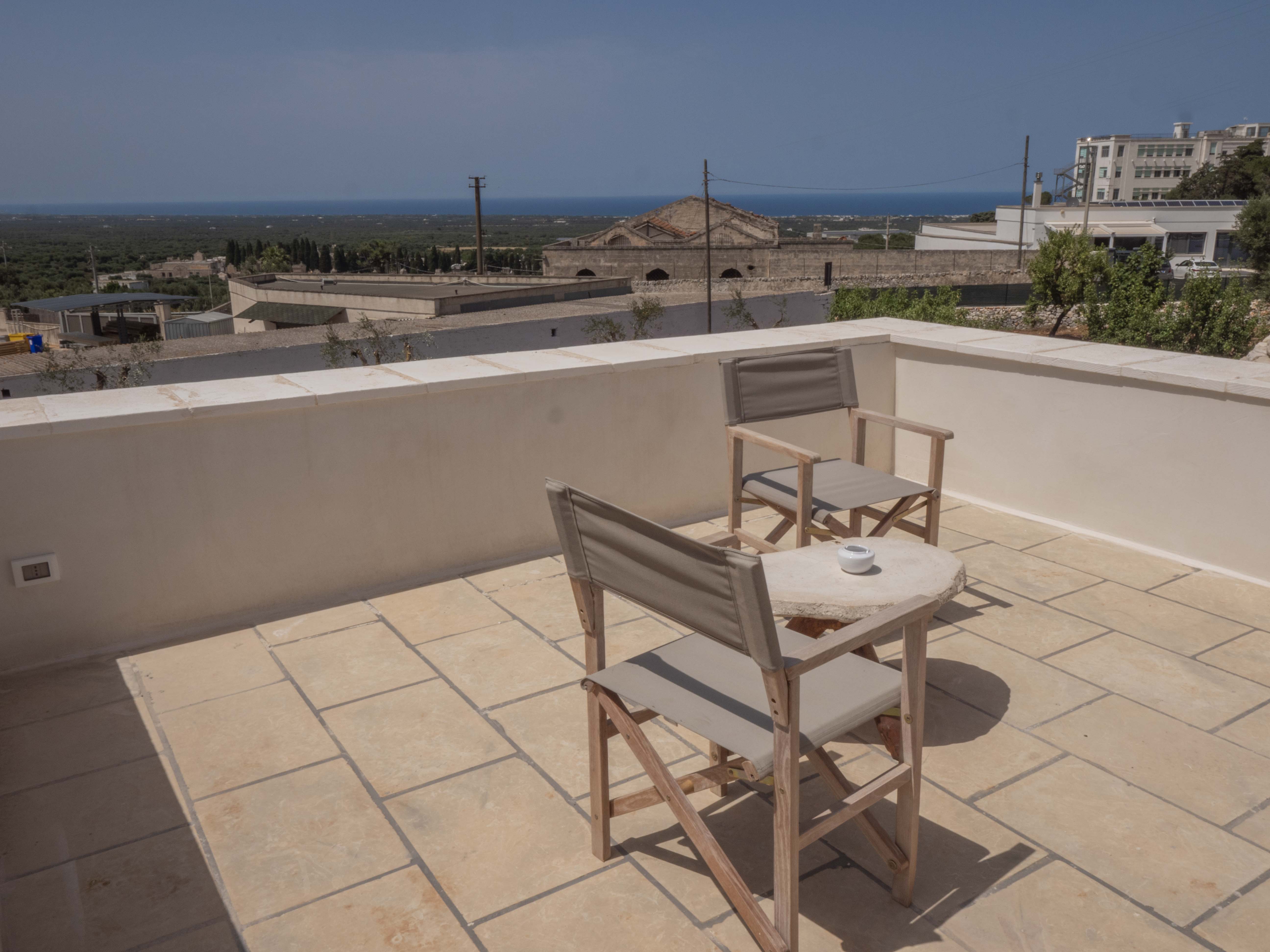 Located at the foot of the historic center of Ostuni is unique for its location. It allows you to reach the historic center on foot by leaving your car inside the fenced plot (about 250m) and allows you to reach the sea in only 5 min by car. From Ostuni it is possible to reach the port cities of Monopoli and Polignano a Mare or other towns in the Valle D'itria such as Alberobello, Locorotondo and Cisterino.The property is 25 minutes from Brindisi airport and 45 minutes from Bari airport.